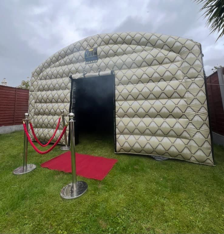 Bring the club to your garden with the 15ft x15ft inflatable nightclub VIP👑. Designed for birthday parties and Birthday party hire, this compact inflatable packs a Bluetooth speaker, smoke machine, DJ freestanding disco lights and an icebox. Ideal for birthday ideas and 16th ideas. Fast setup. Safe operation. Instant wow. 🎉