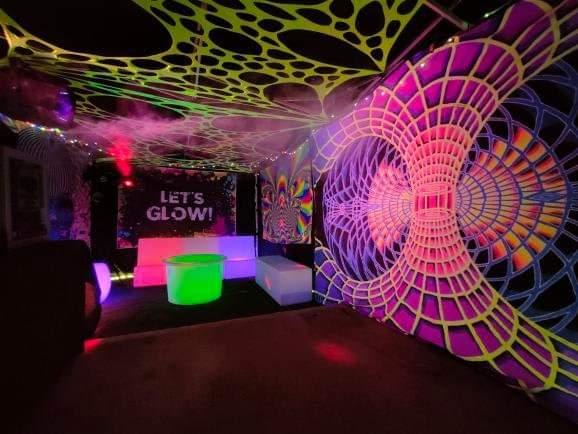 Welcome to our family-run business located in Culloville. Introducing our mesmerizing and fully custom UV Rave Party Tent Package, designed to impress your guests with a unique and unforgettable experience.