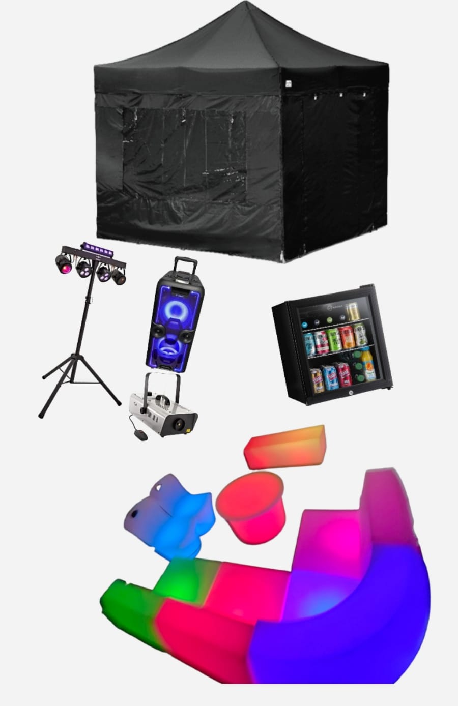 Looking for a 3m x 3m Party Tent in Newry for a small garden or intimate gathering? Our smaller Party Tent package is the perfect fit for your needs. This commercial-grade gazebo comes in a size of 3m x 3m and is suitable for small gardens in Monaghan, Armagh, or Newry. Choose from a range of colors including Purple, Grey, Black, or Yellow to suit your preference. Enhance the ambiance with our large LED furniture, offering 16 different colors and a variety of light functions for a stunning visual experience. Perfect for Children's Parties in Newry, Teenage Birthday Parties in Carlingford, Communions in Dundalk, Confirmations in Monaghan, and Family Occasions in Armagh. This package also includes a Free Standing Tripod Disco Lights, Smoke Machine, and a Large Extra Bass Bluetooth Speaker, creating a vibrant Night Club Party Vibe for all ages. Due to high demand, it's advisable to book this sought-after package well in advance to avoid disappointment. All Party Tents are available for 24-hour bookings, with the option for additional days on request. Looking for more? Explore our Extra Items. Package Inclusions: - 3m x 3m Commercial Grade Gazebo - DJ Disco Lights - LED Furniture - LED Rope Lights - Large Bluetooth Speaker - Smoke Machine - Fridge - Folding Table - Birthday Banners"