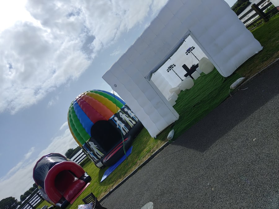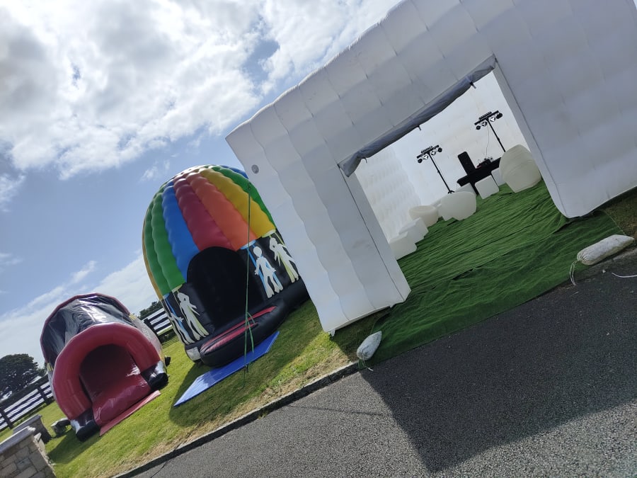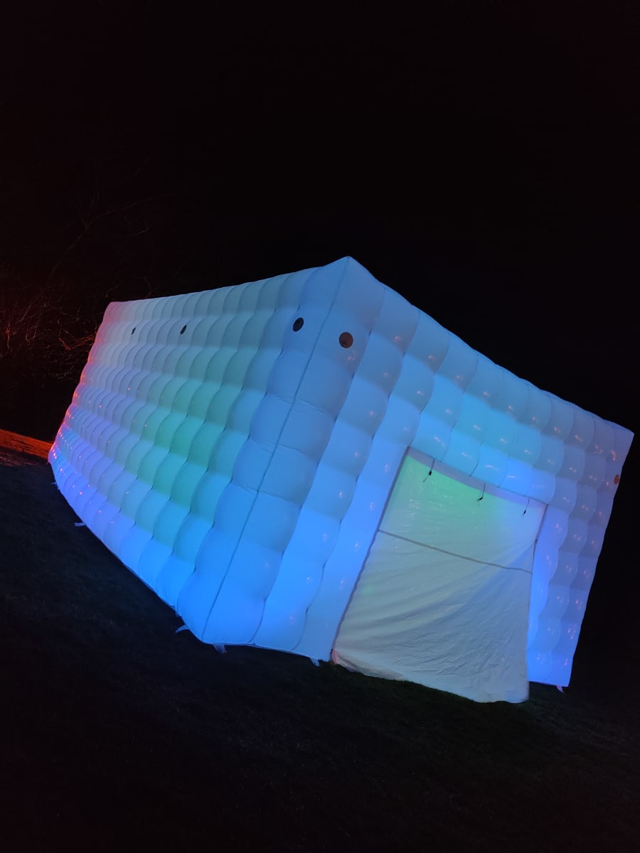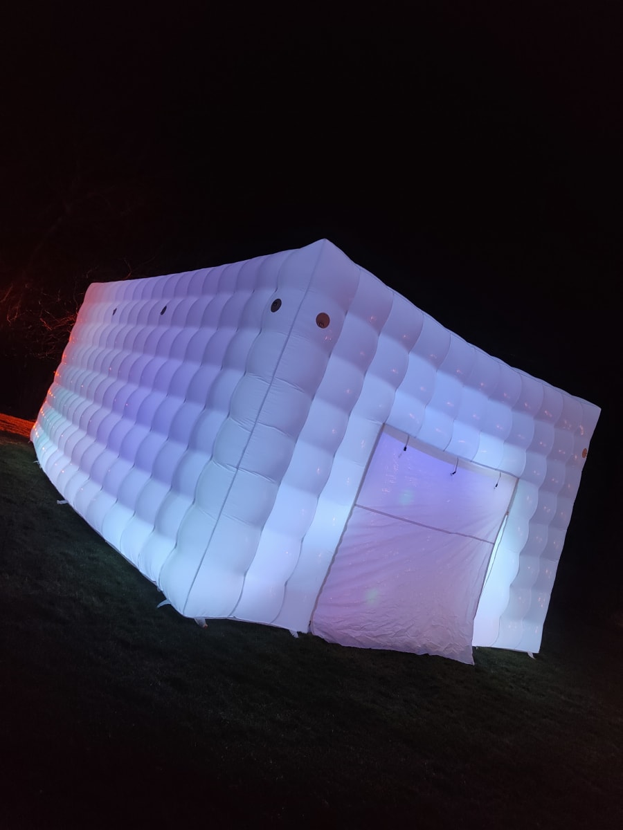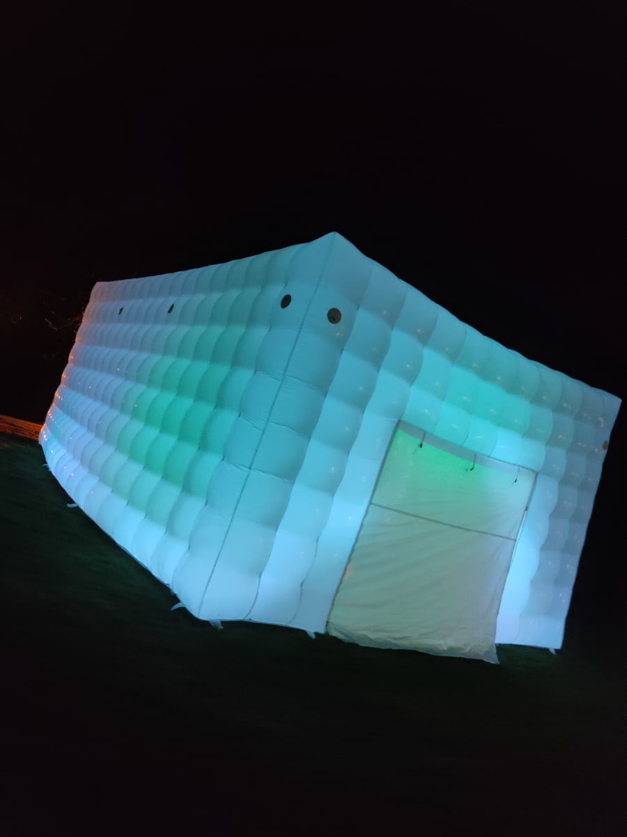 Are you considering hosting a memorable party this year? Picture the delight on your guests' faces when they arrive at your very own back garden and are greeted by an inflatable nightclub setting. Our versatile cube is suitable for all ages, perfect for kid and adult parties alike. It's a hit at events like birthday parties, communions, confirmations, gender reveals, and even hen and stag parties. The LED Cube truly comes alive at night, boasting built-in LED lights that illuminate the entire cube, changing colors and creating a mesmerizing spectacle visible from afar. Measuring 5m x 8m, the cube can comfortably accommodate up to 50 guests. Opt for the full package, which includes artificial grass to cover the ground. Additionally, we offer a range of vibrant LED furniture that comes to life at night, a Bluetooth speaker for connecting your preferred music, DJ Disco Lights with automated motion, and a smoke machine to enhance the visual effects. If you're aiming to awe your friends, this is the ultimate solution. Bookings are based on a 24-hour hire and require a grass surface. If you have a concrete area, it must be well sheltered, with a possibility of cancellation in adverse weather conditions. We serve areas including Louth, Monaghan, Cavan, Armagh, and parts of Down. For locations beyond our usual delivery area, we offer delivery with an additional charge up to a maximum distance of 1 hour 30 minutes. Feel free to reach out with any questions before booking. Please note, the cube is only showerproof. Delivery to Dublin and Belfast is available upon request."